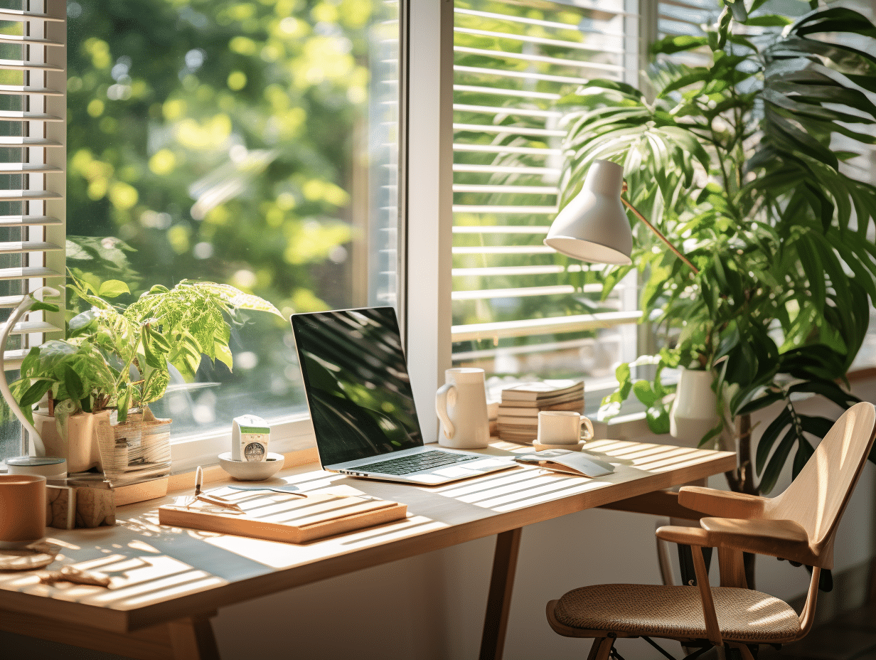 La lumière naturelle joue aussi un rôle crucial dans la création d’une ambiance propice au travail. Essayez donc de positionner votre bureau près d’une fenêtre afin de bénéficier au maximum du flux lumineux naturel tout au long de la journée. Si cela n’est pas possible, investissez dans des lampadaires ou des luminaires avec des ampoules blanches chaudes qui imitent la lumière du jour.